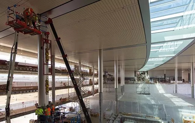 施工中的新蘋(píng)果總部,看起來(lái)確實(shí)有高天棚的開(kāi)放式空間