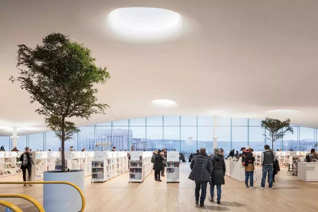 芬蘭的圖書館制度是全世界第一的。頌歌圖書館于2018年12月6日——芬蘭第101個(gè)獨(dú)立日,正式開放。從1998年正式提案、到后來的公開招標(biāo)、館名征集,到設(shè)計(jì)完工,花了20年。在2013年的國(guó)際公開設(shè)計(jì)招標(biāo)中,通過匿名評(píng)選,赫爾辛基的ALA建筑設(shè)計(jì)事務(wù)所勝出了。