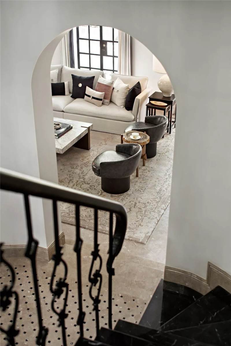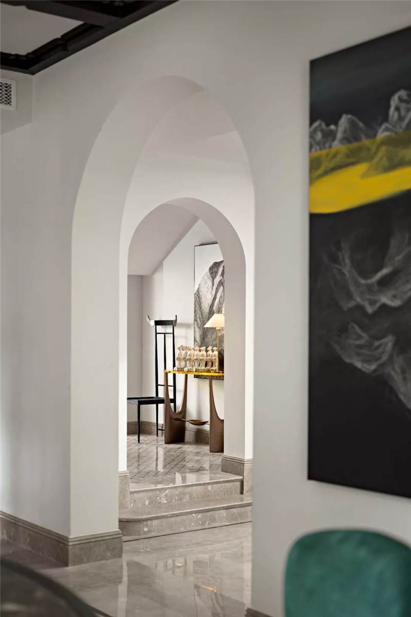從建筑外觀到室內(nèi),拱門(mén)設(shè)計(jì)無(wú)疑是空間中最引人注目的亮點(diǎn),經(jīng)典的幾何線條在空間交匯處劃下瀟灑自由的一筆,破格又落定,促成雙空間的融合。皆因設(shè)計(jì)師黃全對(duì)細(xì)節(jié)的一絲不茍,每一個(gè)構(gòu)件都在美學(xué)態(tài)度的牽引下找到最合適的表現(xiàn)形式。