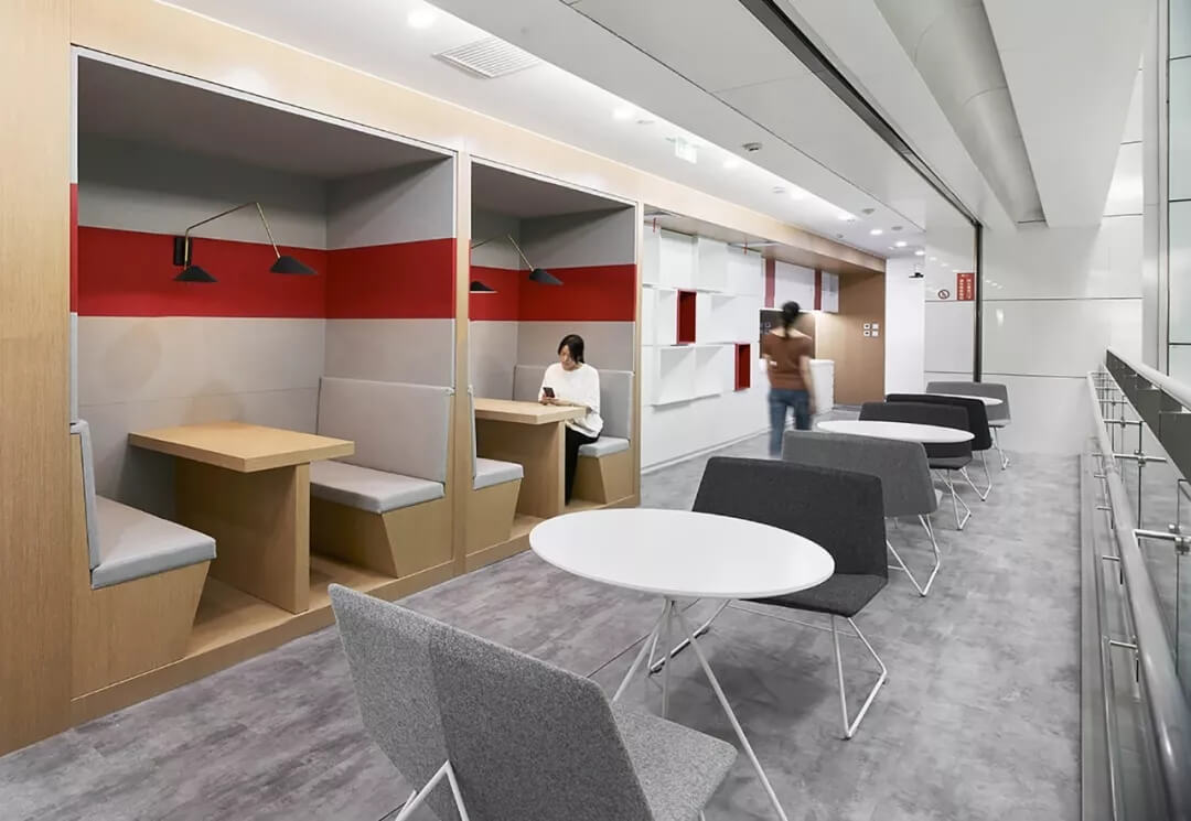 辦公空間設計無論如何發(fā)展,追求高效率始終是不變的目標。艾迪爾倡導的靈活辦公,是想通過辦公環(huán)境設計鼓勵員工多互動,更有量有質(zhì)的交流,因此在設定一系列休閑洽談區(qū)以外,茶水區(qū)這一休憩,互動,輕松交流的高頻區(qū)也是設計重點,是體現(xiàn)企業(yè)風格和人文關懷的重點打造區(qū),滿足員工不同的選擇和空間體驗感。