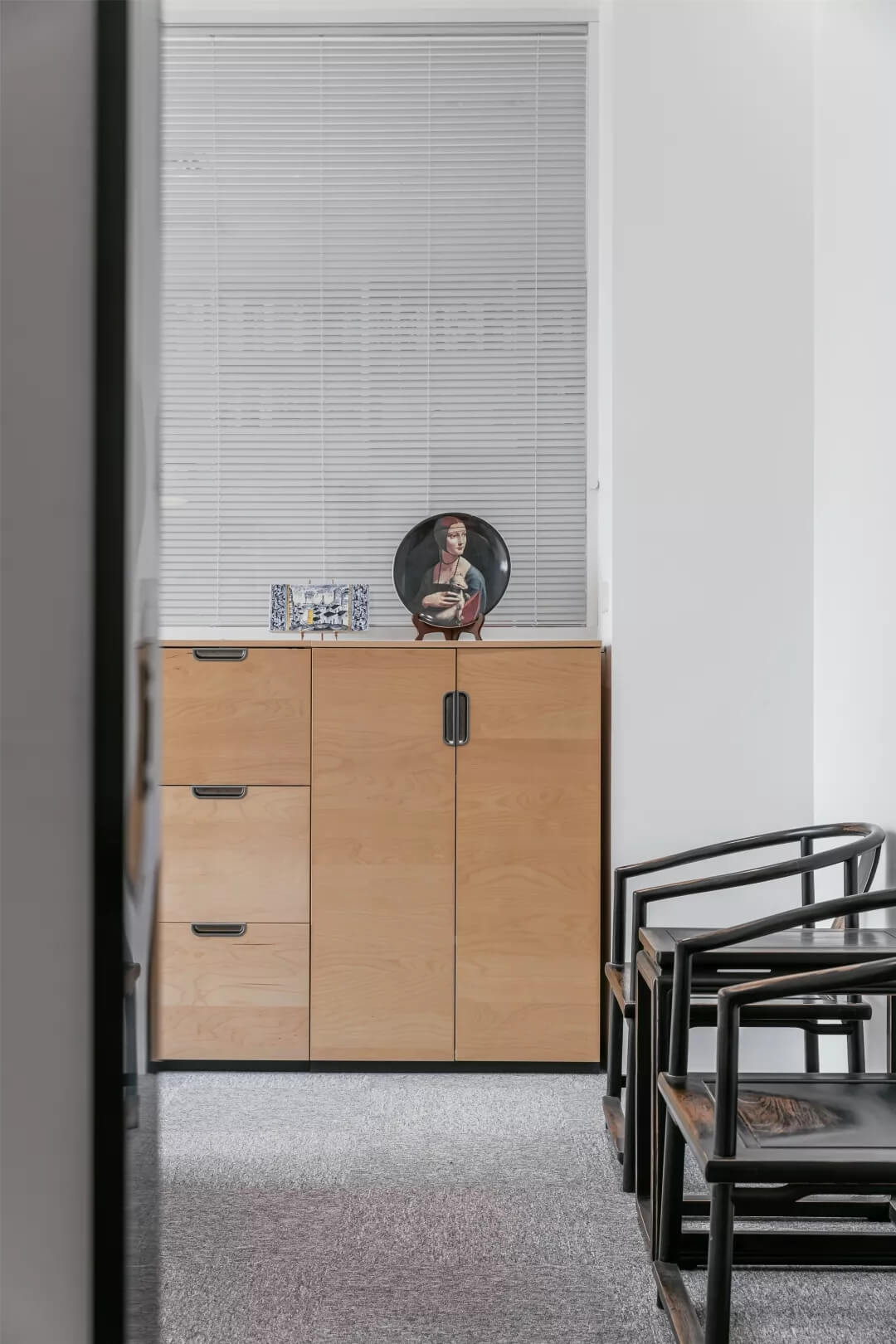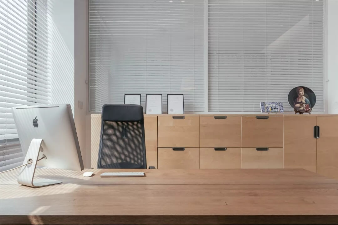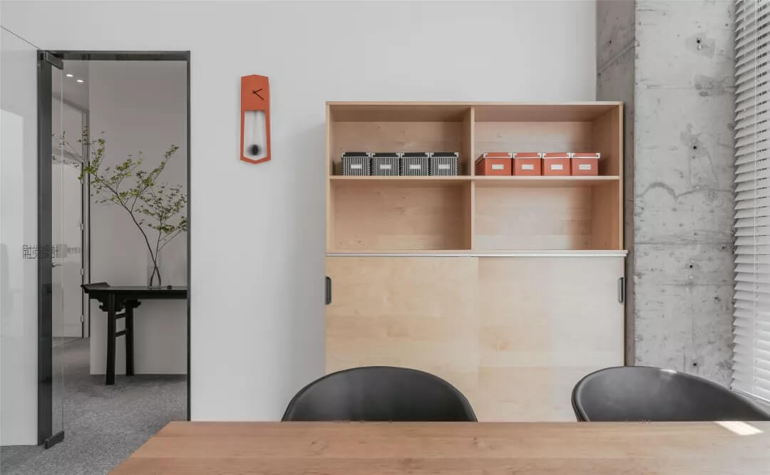 自由無(wú)拘的溝通對(duì)于團(tuán)隊(duì)的創(chuàng)新至關(guān)重要。開放的辦公區(qū)是有效獲取信息和激發(fā)靈感的地方。百葉窗折射的光影,充足的自然光營(yíng)造高效的工作環(huán)境??臻g雖然有限,但發(fā)揮最大的性能,開辟出一整面的軟裝材料搭配區(qū)。