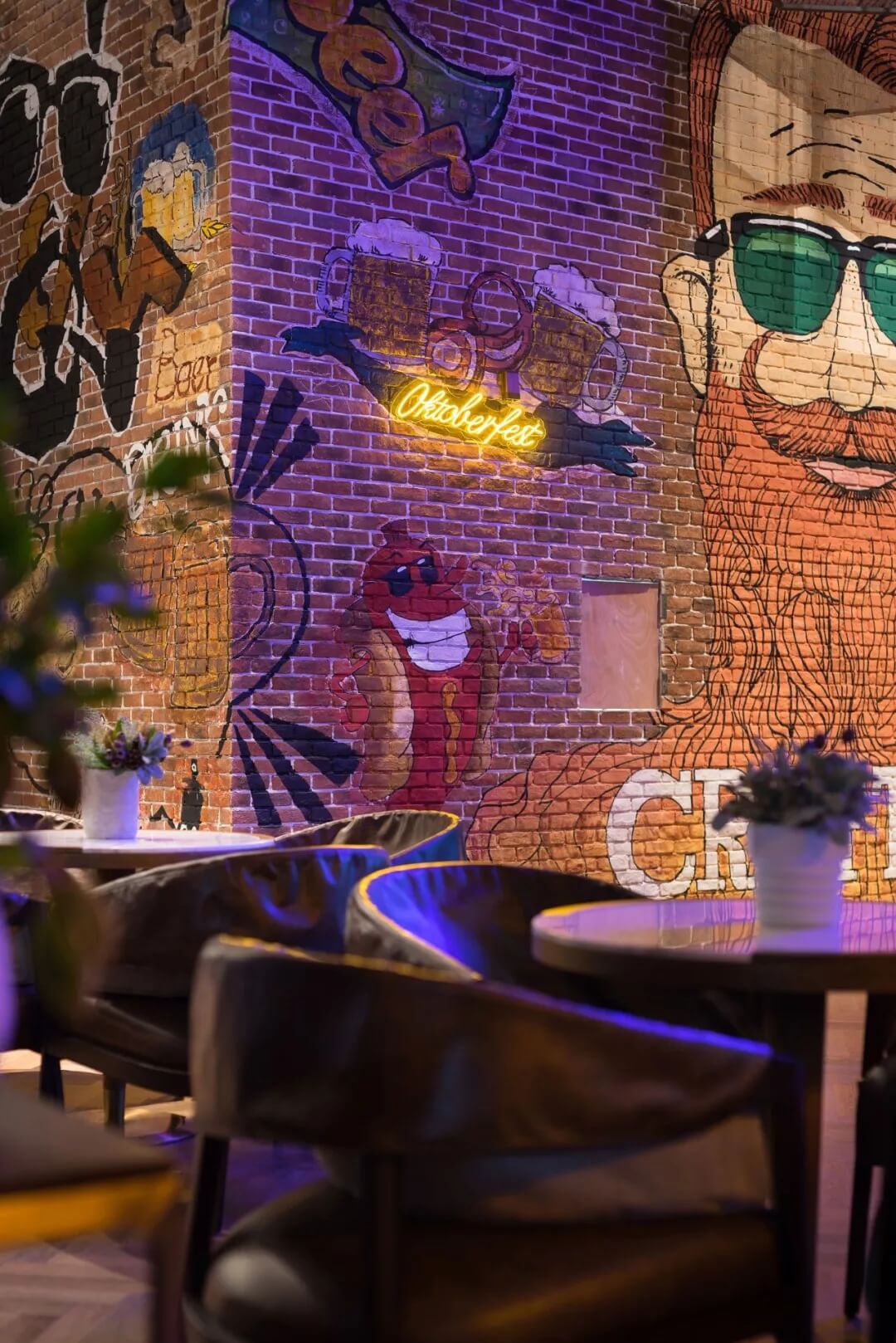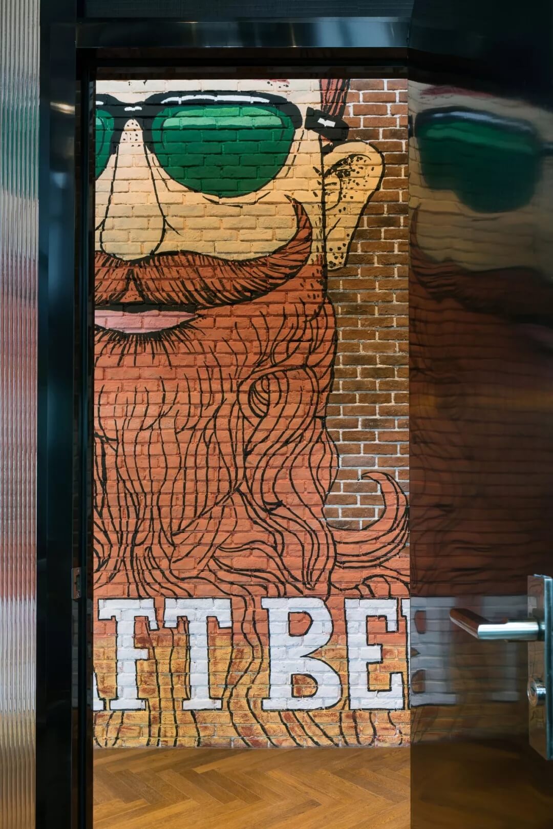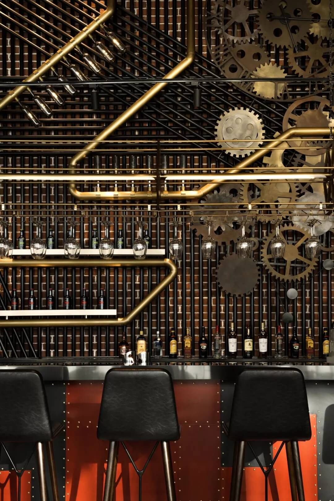 工業(yè)風(fēng)的精髓在于,在原空間樸拙素簡(jiǎn)的本真狀態(tài)下延展其自由隨性的氣質(zhì),在粗獷的空間架構(gòu)中消解拘束感,呈現(xiàn)出大氣又不失細(xì)膩的美感。粗礪的紅磚墻、朋克夸張的墻畫涂鴉、裸露的管道線路、復(fù)古做舊的齒輪掛件、紅黑交接的鉚釘吧臺(tái)......統(tǒng)攝進(jìn)工業(yè)風(fēng)的設(shè)計(jì)常規(guī)之中。