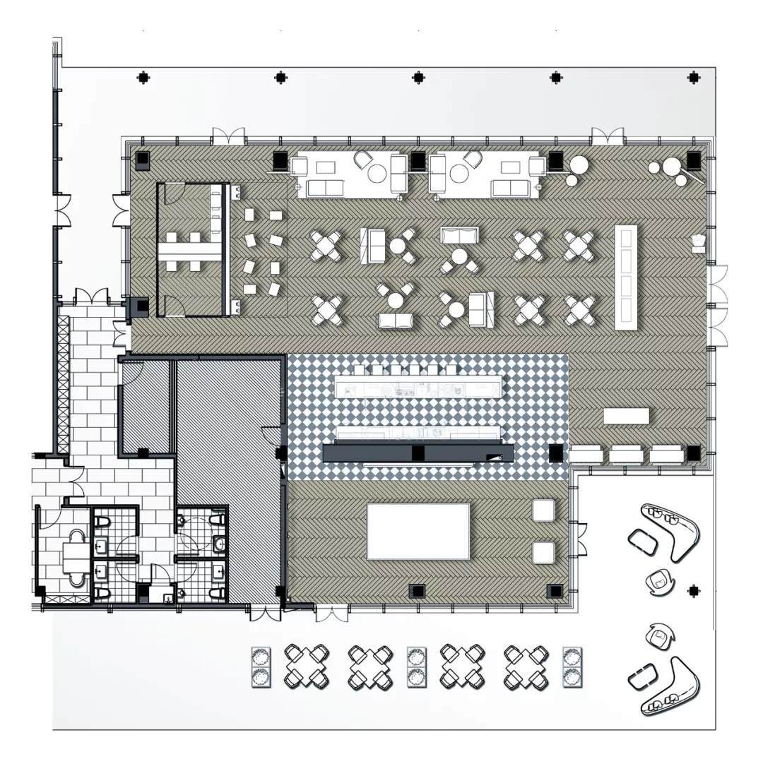 設(shè)計(jì)將足球的六邊形化用于天花的裝飾上,立體幾何的體量、金屬線條的質(zhì)感賦予了社交空間的適當(dāng)距離感。多幅大屏幕的配置,讓聚于此的人們,沉浸于啤酒吧和比賽現(xiàn)場(chǎng)的氛圍當(dāng)中,盡情享受在開闊大氣的空間格局中觀摩賽事的自由,為熱愛喝彩,為夢(mèng)想干杯,傳遞運(yùn)動(dòng)不止的精神。