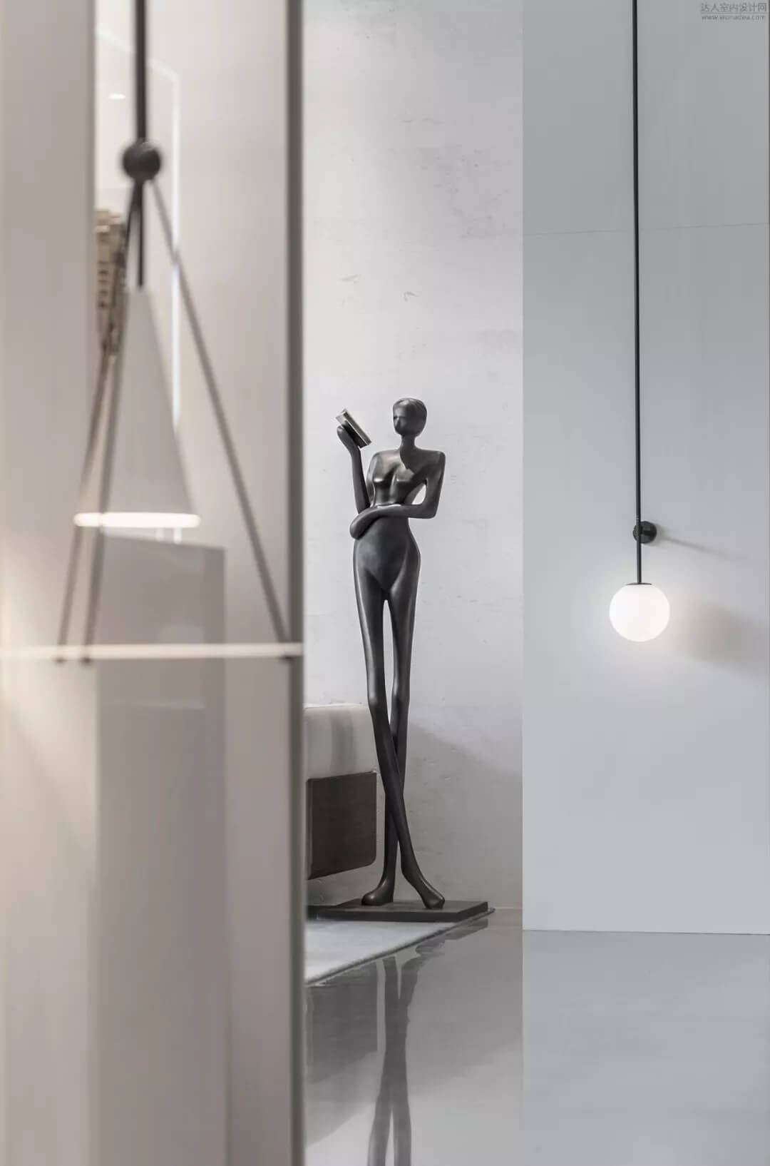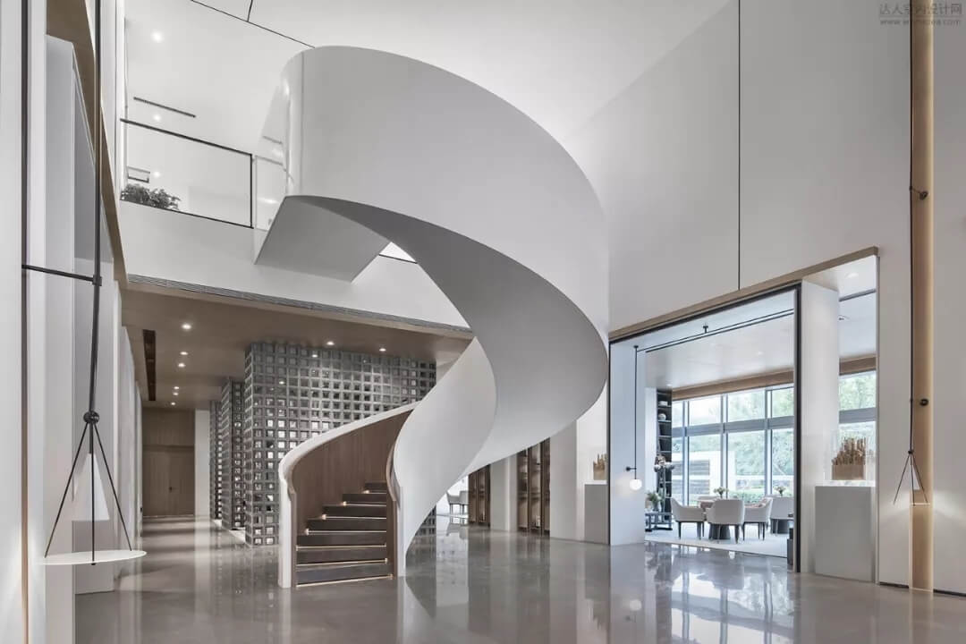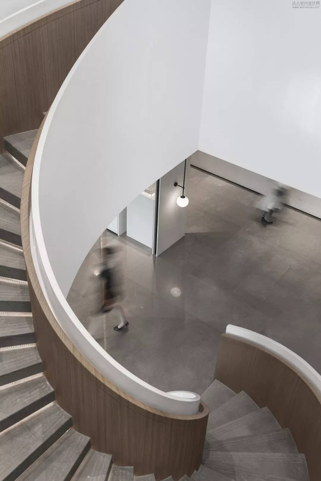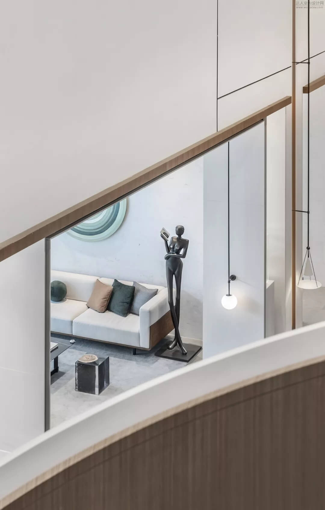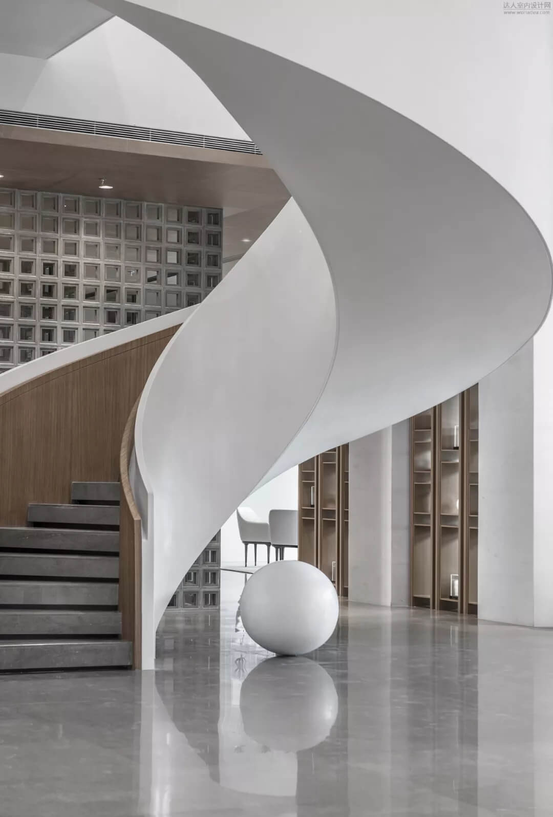 淡雅的白色配以溫馨木色的夢(mèng)幻般旋轉(zhuǎn)樓梯入口,白色球體與之呼應(yīng),旋轉(zhuǎn)而上,動(dòng)態(tài)感的景色盡收眼底,格子狀猶如延續(xù)的·星際穿越,感受平衡時(shí)空不同維度的交措時(shí)光,身處'空間',在無限與有限中穿梭,不經(jīng)意的轉(zhuǎn)角余光是同色的球燈相映,優(yōu)秀的設(shè)計(jì)師是會(huì)講故事的人。