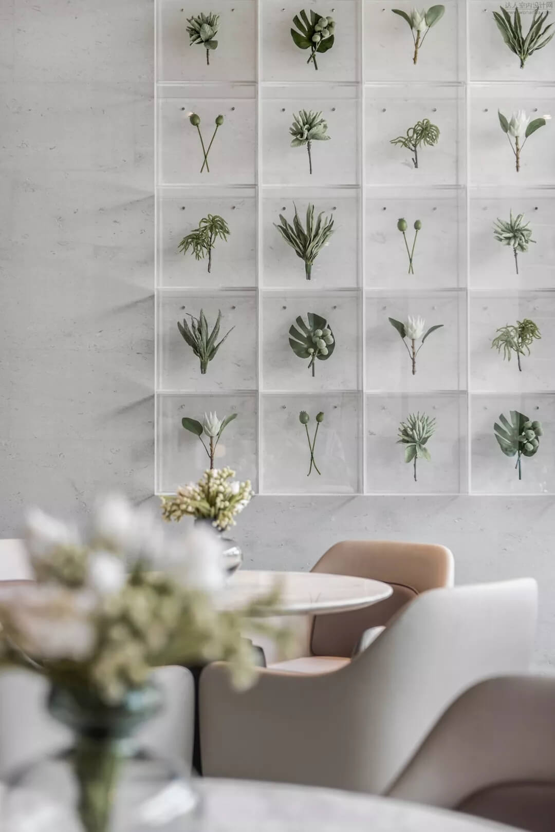 洽談區(qū)的一面墻壁,猶如進(jìn)入了植物博物館,自然果實(shí)鑲嵌與其中,綠色是植被的主色,也是和平的代表,也是予以生命呼吸之本源,每個(gè)小小的果殼中都孕育著無限大的能量。