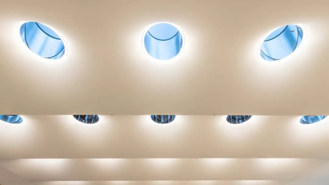 廣場上除了18個凸起天窗,還有 62 個與地面齊平的圓形磨砂天窗。