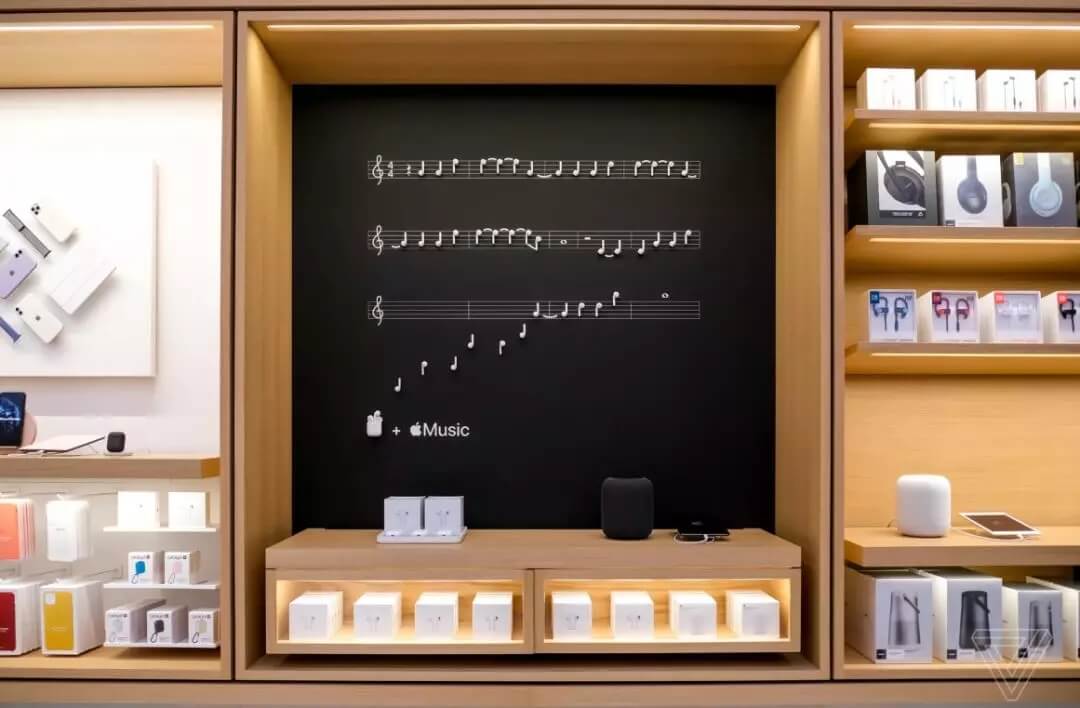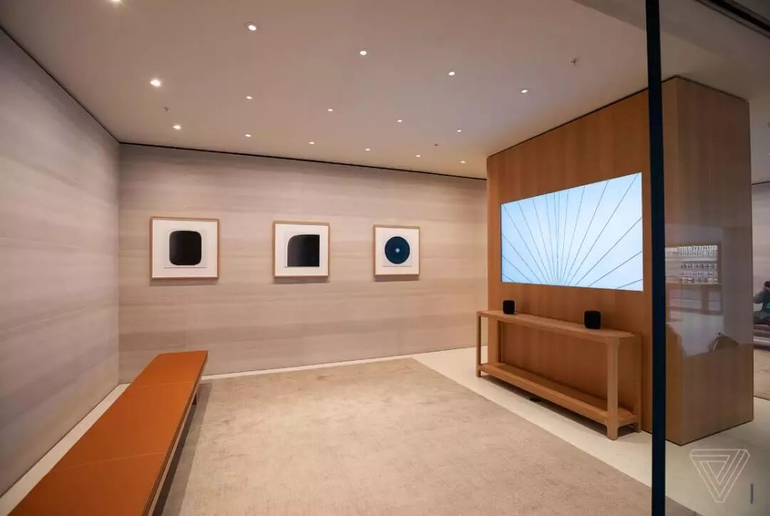 該店鋪內(nèi)重新設(shè)計了攝影大道,其背景墻適用于新款手機的拍照測試,這里也是世界上第一個開設(shè)專門展示AirPods的大道的商店。