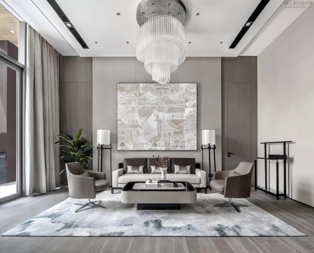 青島青特悅海府售樓處裝修,運用極簡現(xiàn)代藝術的設計手法, 融入當代藝術與人文極簡,在空靈與東方意境中凝練出獨特的空間氣質。設計師嘗試用當代簡約精神重塑東方文化的韻律之美,拂拭去顯性東方符號,用去符號化的設計手法,通過刻畫自然無形的氛圍,回歸當代設計的精神本源。