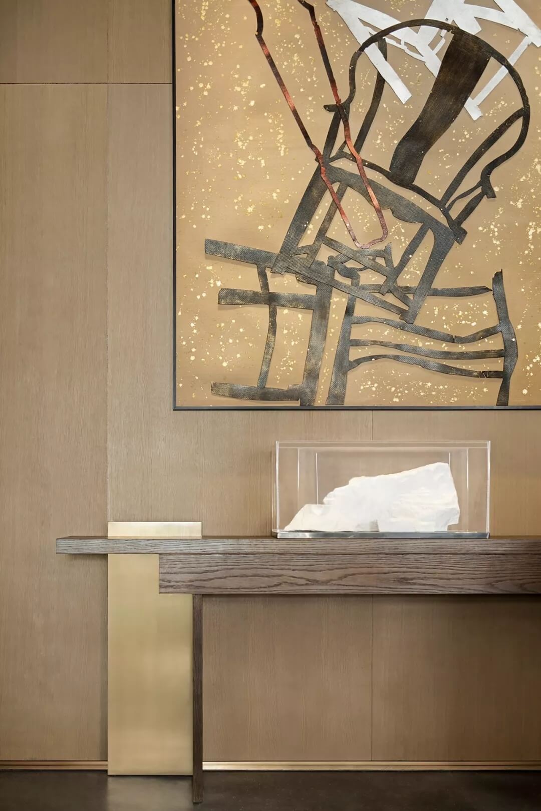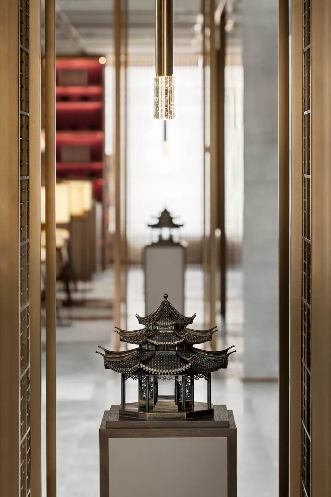 后廳兩端藝術裝置呈矩陣對稱分布,延續(xù)了古老東方的嚴肅審美。在材質多元的形態(tài)下,又極具層次變化。