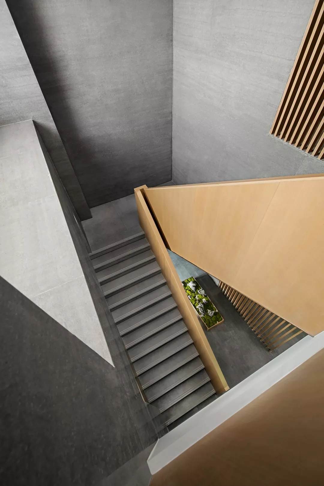 考慮到實用性與安全性,空中連廊處以玻璃扶手作為有力支撐,外圍予以木格柵裝飾,整體用色克制統(tǒng)一,在極具秩序感的光影里,彰顯了設計師一貫簡約純粹的風格。