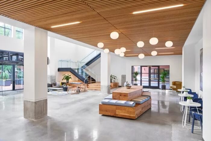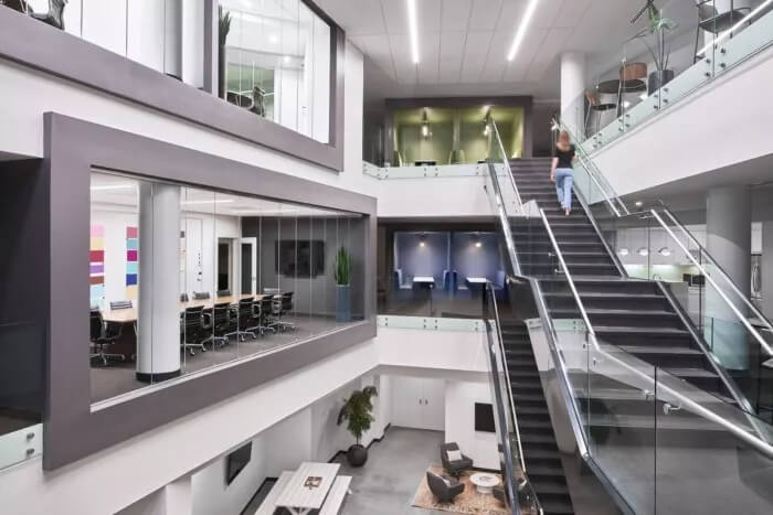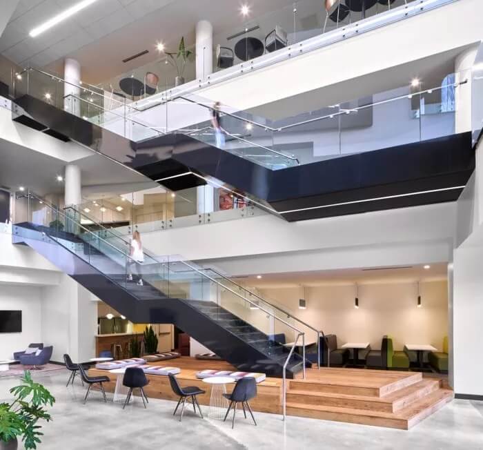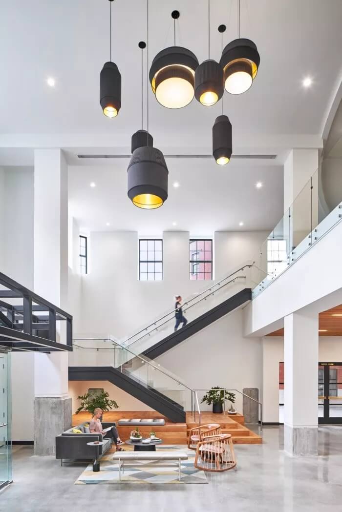 在整體美觀方面,3north剝離了裝飾性金屬制品,并將空間恢復(fù)為天然材料,干凈的線條和充足的自然光線。螺旋樓梯(一直是瓶頸交通的源頭)被拆除并簡(jiǎn)化了形式和材料調(diào)色板。拋光混凝土地板和裸露的天花板為經(jīng)典,現(xiàn)代設(shè)計(jì)做出了貢獻(xiàn)。在整個(gè)過(guò)程中,該建筑向后退一步,將焦點(diǎn)放在本地藝術(shù)和手工藝上。這是一個(gè)為員工本人打造的空間,無(wú)論員工的工作方式,當(dāng)前的心情或聚會(huì)的方式如何,他們都可以高效地工作,而且最重要的是可以激發(fā)靈感。