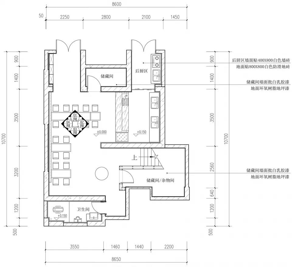 在一層和二層的主要就餐區(qū)設計上,我們用藍色的頂面定出空間的基本色調, 其余的空間則選擇:不透明-鏡面反射-金屬材質反射-半透明材質-材質漫反射-開窗引光-透明家具共同營造出波光海面的效果。因此在空間效果的營造上,對這幾個部分的材質選用和做法成為這個設計的核心技術要素。