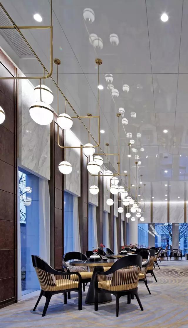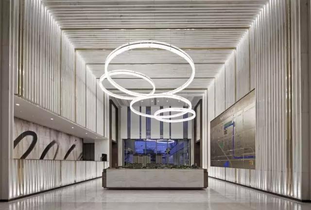 大型吊燈宛如運(yùn)河之水泛起的漣漪,靈動(dòng)唯美,抓人眼球。地面低調(diào)華麗的灰色大理石與之遙相呼應(yīng),古代先哲素有“天圓地方”之說(shuō),意境深遠(yuǎn)的寫意格調(diào)翩然入室,整個(gè)空間滲透著典雅尊貴的氣派。